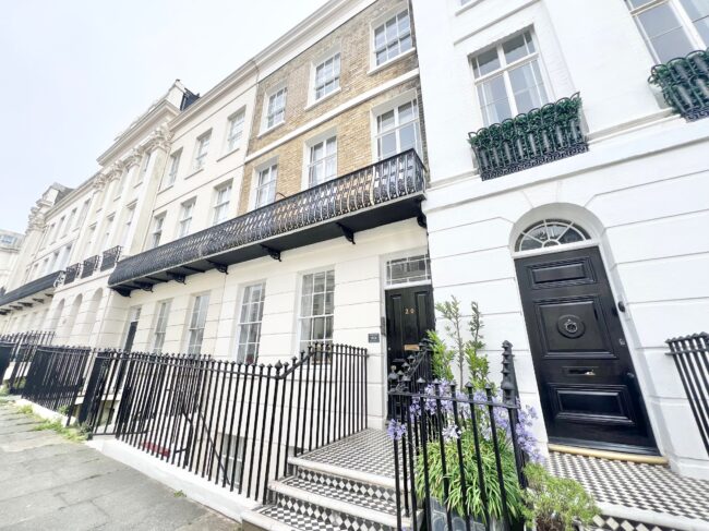 Spacious one bedroom first floor Regency apartment with private front balcony with sea views and a beautiful rear roof terrace. The property itself comprises; a grand living room with tall ceilings, original wood flooring and a feature fireplace, a separate fully fitted kitchen with tall fridge….